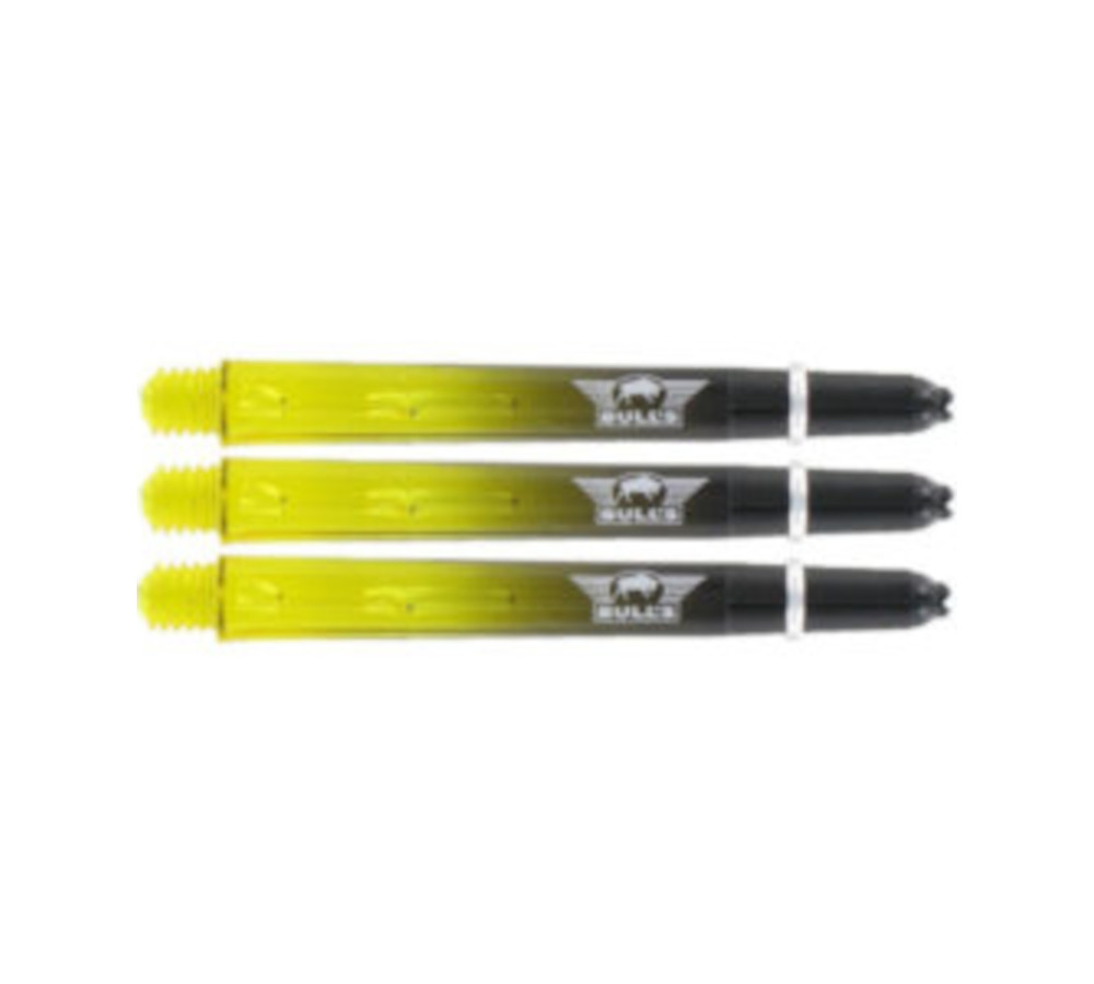 Bull’s Airstriper Yellow Medium Shaft 48 mm inclusief ring, gemaakt van duurzaam polycarbonaat, biedt stabiliteit, grip en een opvallend transparant design.