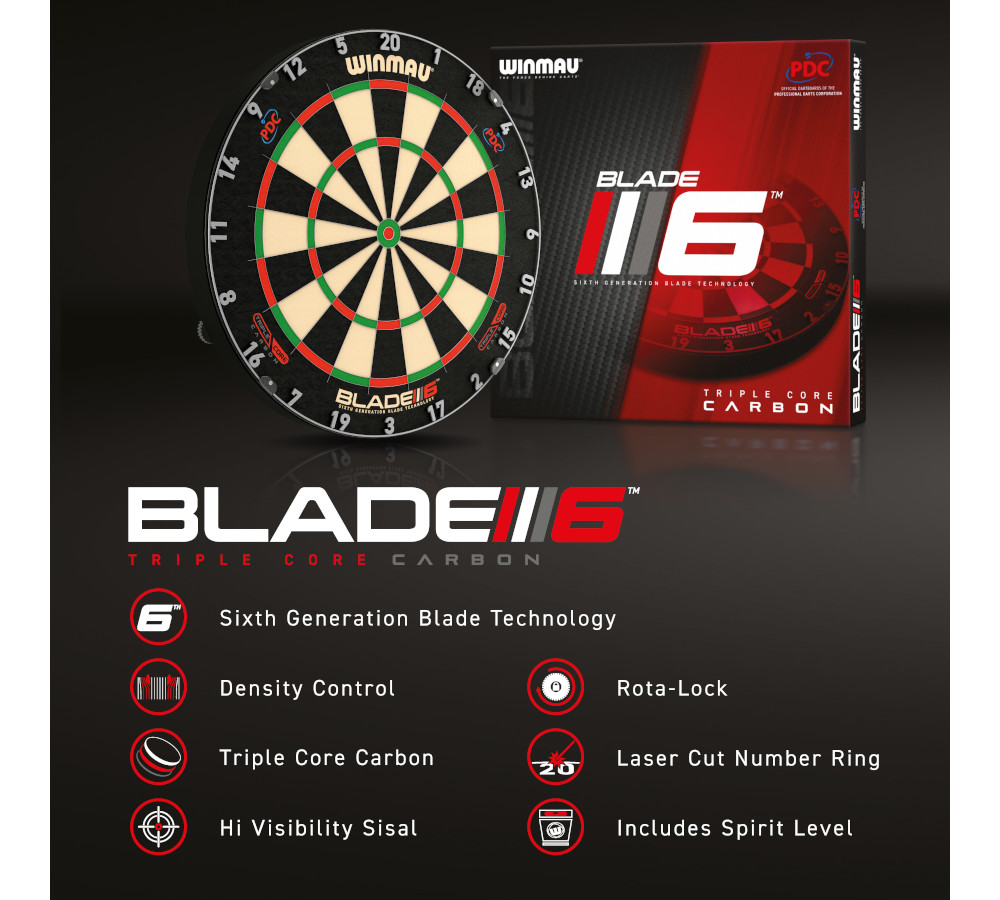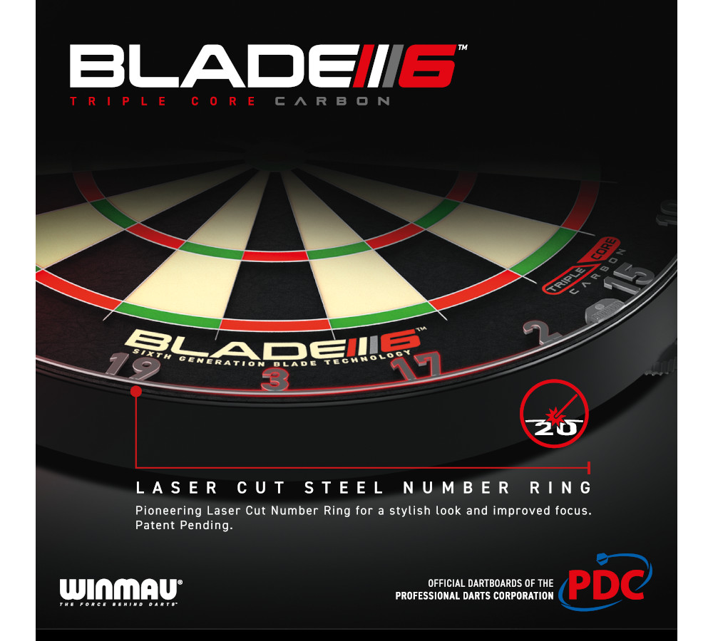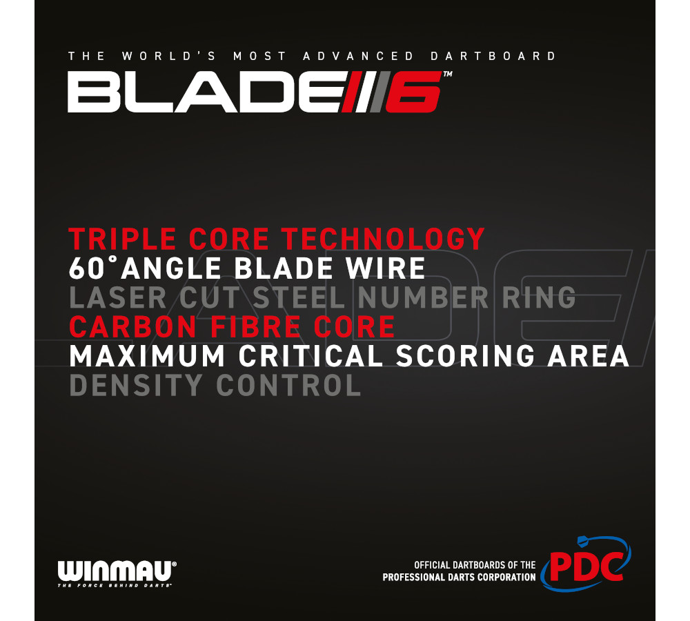 Winmau Blade 6 Triple Core Dartboard: topkwaliteit, drievoudige kern en minimale bounce-outs.