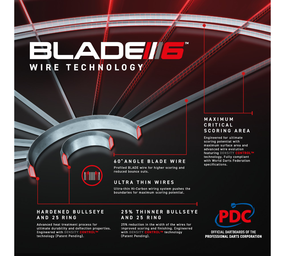 Het Winmau Blade 6 Triple Core Dartboard is voorzien van een ultradun draadontwerp. Daardoor wordt de kans op afketsers drastisch verminderd. De scherpe snijrand van het geavanceerde Density Control™-draad leidt de pijlen automatisch naar de scorezones, wat zorgt voor consistente prestaties bij elke worp.