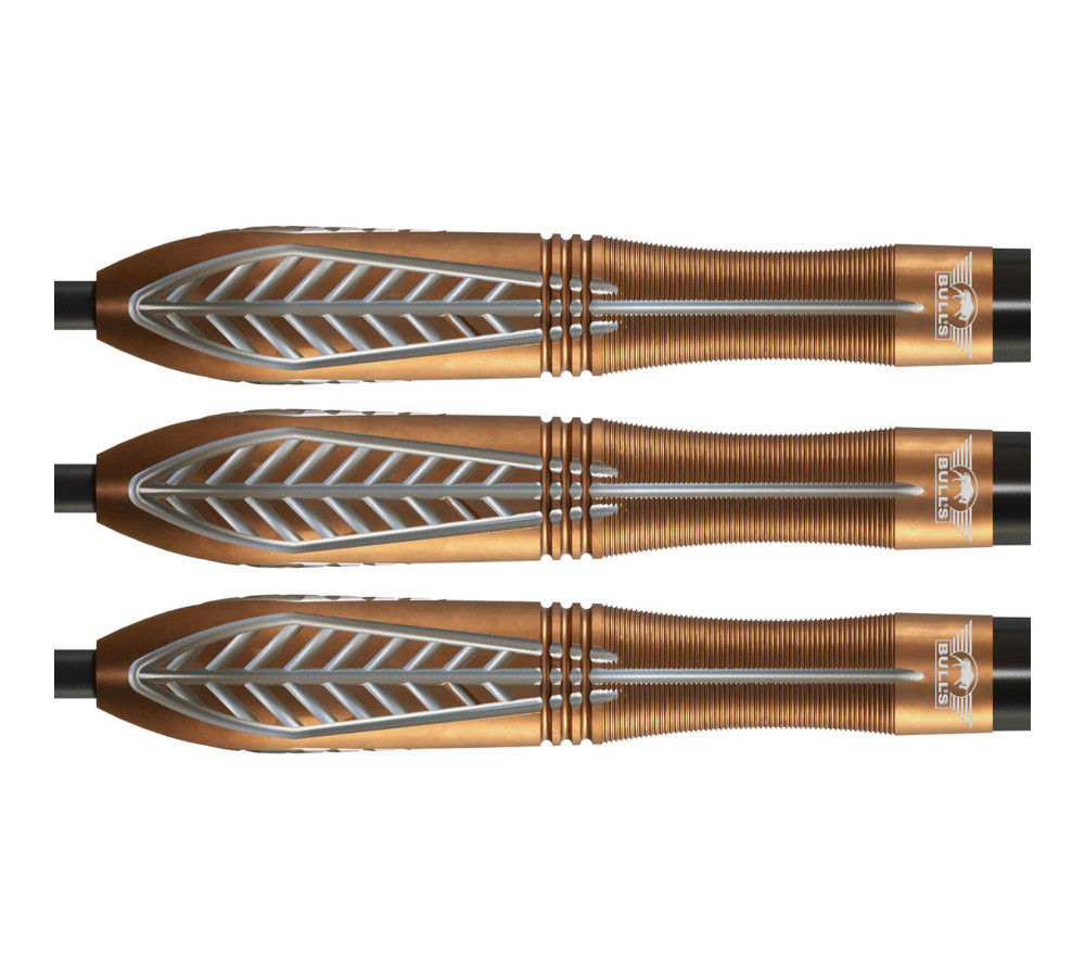 De Bronzo Nova 24gr steeltip dart van Bull’s behoort tot de exclusieve Bronzo-serie. Deze serie is geïnspireerd op de kracht en het vakmanschap van de bronstijd. De Bronzo Nova combineert stijl, precisie en controle in één krachtig ontwerp. De bronskleurige en zilveren afwerking geeft de dart een unieke uitstraling. De zorgvuldig ontworpen gripvlakken versterken zowel controle als comfort.