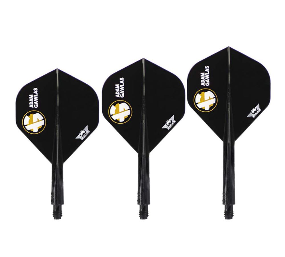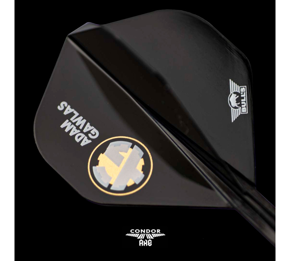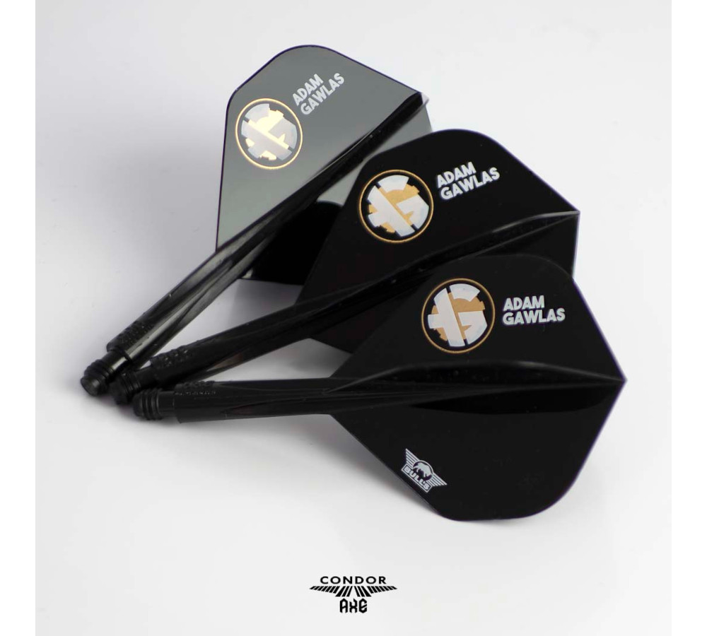 De Condor Axe Adam Gawlas Medium shaft (27,5 mm) met standaard flight biedt darters optimale stabiliteit, controle en duurzaamheid in een stijlvol zwart design.