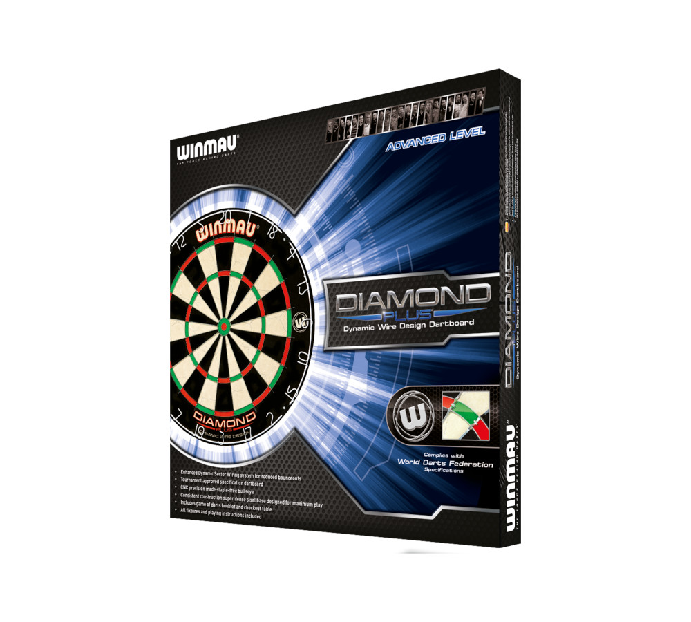 Het Diamond Plus Dartboard is voorzien van ultradunne diamantdraden. Daardoor worden bounce-outs aanzienlijk verminderd, en blijft elke score tellen. Bovendien zorgen de schuine draden voor een vloeiende afbuiging van de pijlen richting het scorevlak.