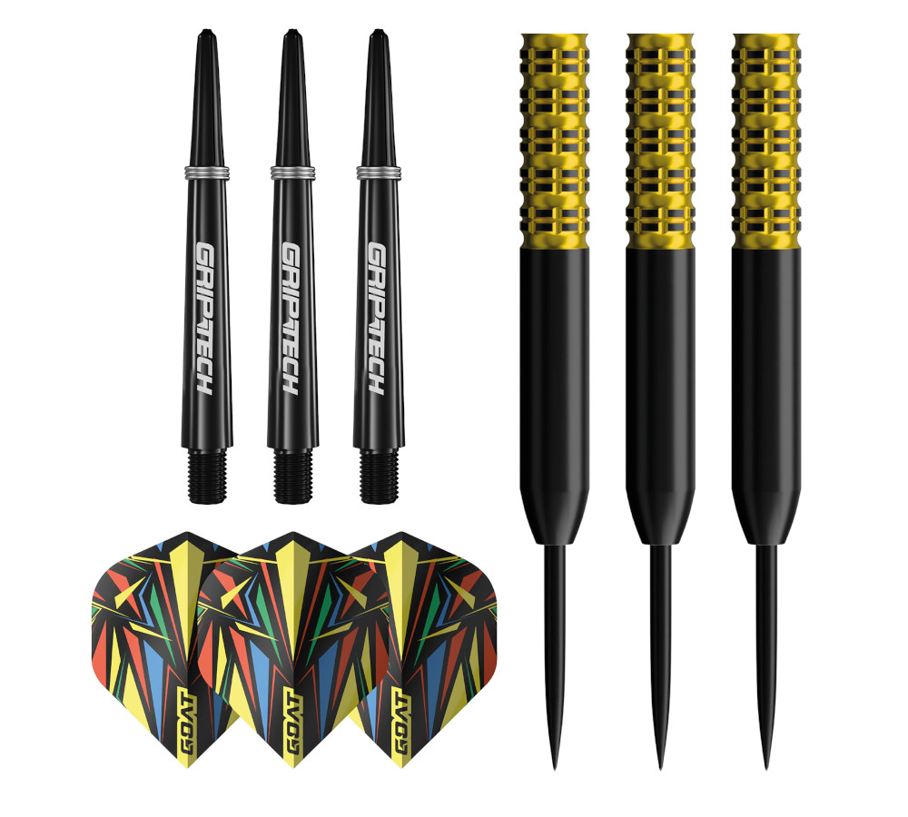 🎯 GOAT Athlete Black Yellow 26g Steeltip Darts – Energie, focus en controle