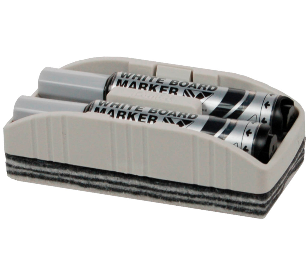 Deze set bevat een handige whiteboardwisser én twee Pentel Maxiflo markers.