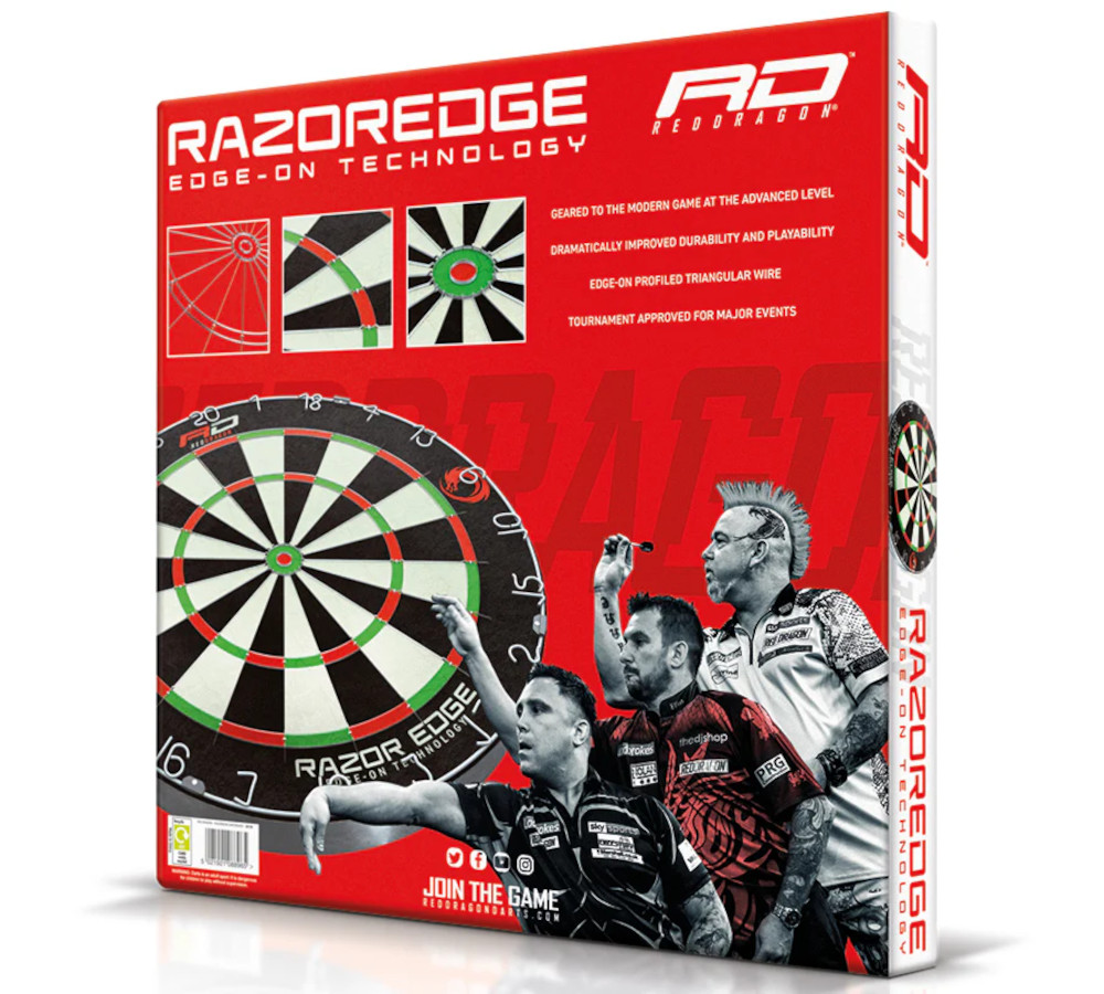 Het Red Dragon Razor Edge Dartboard biedt premium sisal, ultradunne bedrading en minder bouncers voor een professionele en duurzame speelervaring.