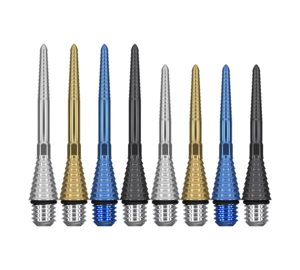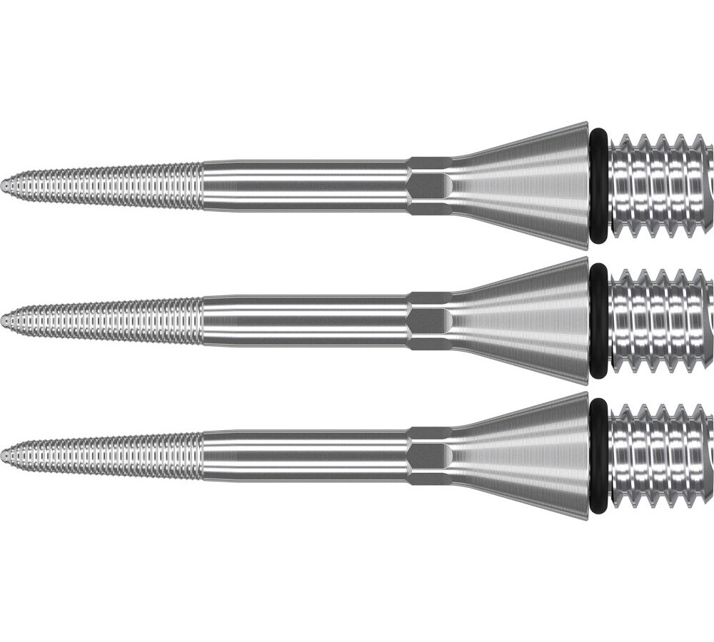 Deze conversiepunten zijn vervaardigd uit hoogwaardig titanium, een materiaal dat bekendstaat om zijn sterkte en lichte gewicht. Hierdoor behouden je darts hun balans en stabiliteit, wat essentieel is voor een vloeiende worp. De zilverkleurige afwerking geeft bovendien een moderne en professionele uitstraling aan je dartsetup. Met een lengte van 26 mm biedt dit model iets meer controle, ideaal voor spelers die een compactere dart prefereren.