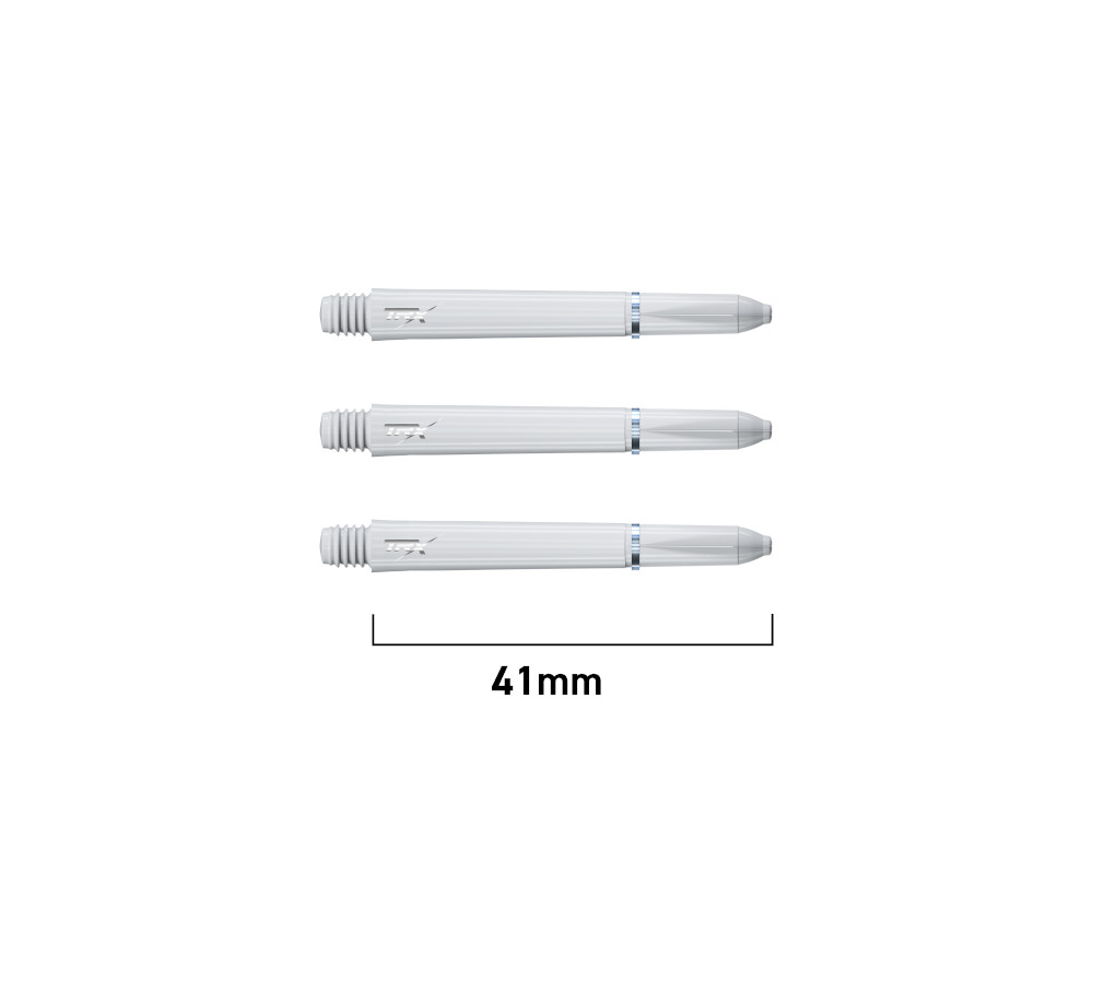 De TRX White Intermediate heeft een lengte van 41Β mm exclusief schroefdraad. Daardoor biedt deze lengte een ideale middenweg tussen stabiliteit en snelheid. Daardoor voelt de dart niet te lang of te kort aan, wat veel spelers extra consistentie geeft.