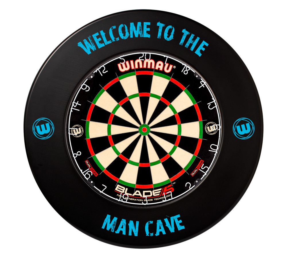 De Winmau Surround Man Cave is een zwarte dartbord surround met blauwe opdruk. Makkelijk te schuiven, beschermt je muren en geschikt voor steeltip dartborden.
